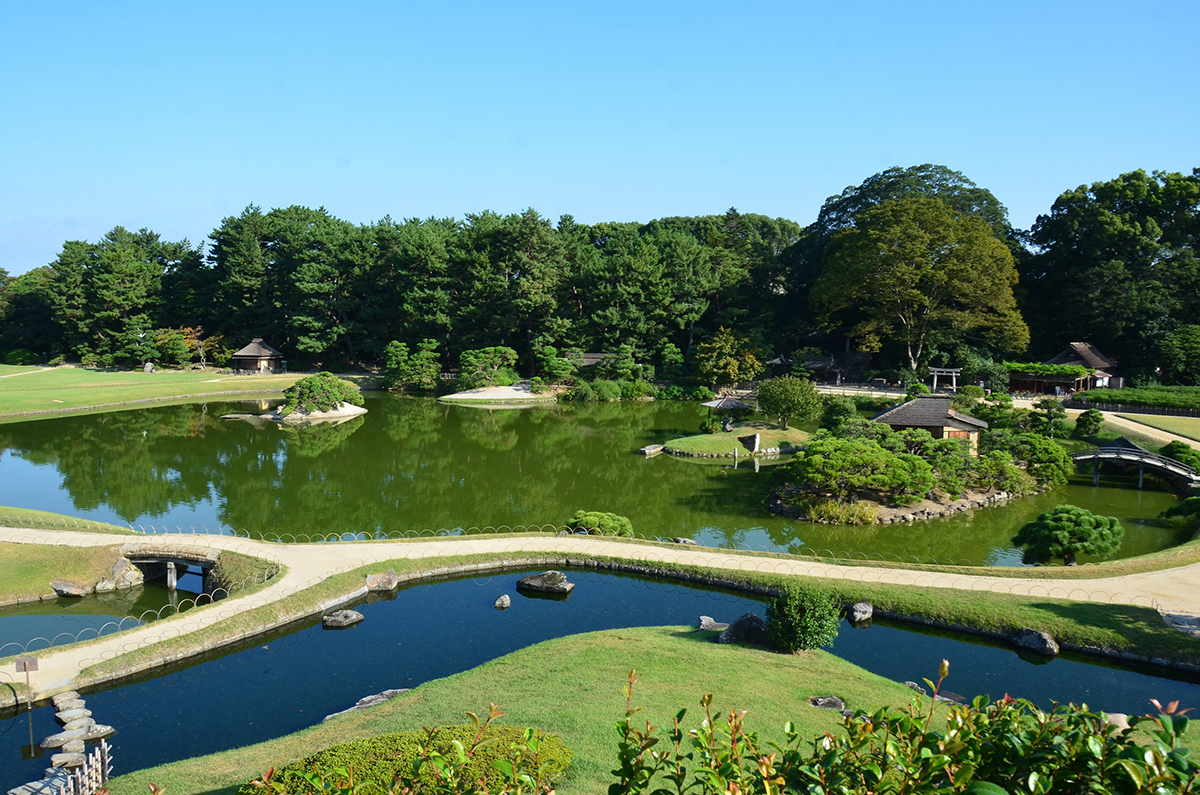 広々とした芝生が特徴的な、江戸時代を代表する大名庭園で日本三名園の一つ。約300年前、岡山藩2代目藩主池田綱政が自身の憩いの場として作った庭で、歴代藩主により建物や築山など少しずつ手が加えられていった。台風や空襲で大きな被害を受けたが、その都度、江戸時代の絵図や資料をもとに当時の姿をほぼ変えることなく復元。園内ではタンチョウを飼育しており、秋冬にはタンチョウの園内散策、茶つみや月見、幻想庭園など、四季折々の催しが開催される。