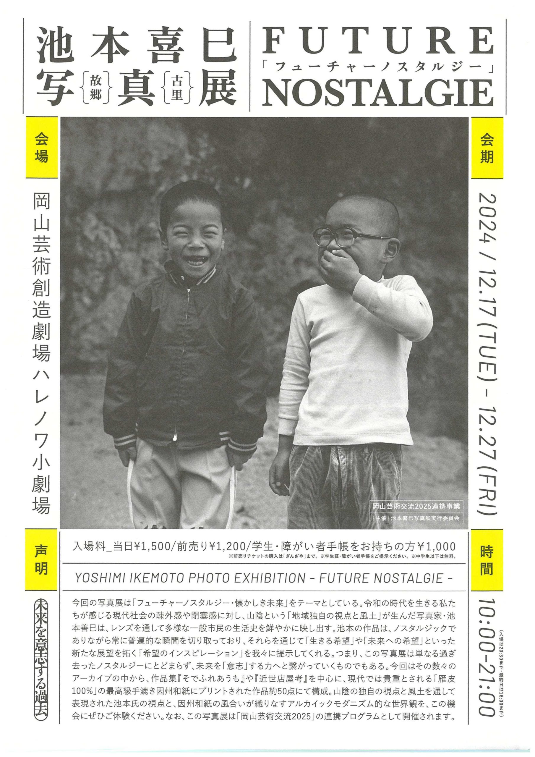 2025.11.06 作品補足情報について 2025.11.07 【連携プロジェクト】小説から聞くクラシック音楽の世界 2025.10.31 岡山芸術交流2025 スペシャルイベント 公開インタビュー|ハンス・ウルリッヒ・オブリスト × 詩人・吉増剛造 2025.10.08 岡山芸術交流2025参加ゲスト「リアム・ギリック」が参加する「高松芸術港 ART PORT TAKAMATSU 2025」が開催中です 2025.09.09 岡山芸術交流2025パブリックプログラム・ディレクター 木ノ下智恵子登壇『Nishi Nippon ARTrail』2025年秋会期 9月15日(月・祝)よりルクア大阪にて開催 2025.04.06 岡山市中心部に現代美術館「ラビットホール」が開館しました。 2025.04.01 岡山芸術交流2025参加ゲスト「サウンドウォーク・コレクティヴ」によるパティ・スミスとの最新プロジェクトが日本初公開__エキシビションとパフォーマンスで発表 2024.12.20 【開幕300日前記念】小学生と「未来のおかやまの街」を描きました。 2024.11.28 【連携プログラム】壁画アートワークショップ(旧岡山市立市民文化ホール)~「岡山芸術交流2025」開催1年前記念イベント~ 2024.11.28 【連携プログラム】「池本喜巳写真展 FUTURE NOSTALGIE」が開催されます。 2024.09.24 「六本木アートナイト2024」に国際芸術祭「あいち2025」と連携し、共同PRブースを出展します。 2024.06.20 アーティスティック・ディレクター「フィリップ・パレーノ」の国内最大規模となる個展がポーラ美術館で開催中です。 2023.09.01 2014年岡山城に展示され話題となったリクリット・ティラヴァーニャ(Rirkrit Tiravanija)の作品を再び展示します(2023年9月18日/イオンモール岡山) 2023.04.07 2023年4月8日(土)から岡山芸術交流2019でアーティスティック・ディレクターを務めたピエール・ユイグ(Pierre Huyghe)の展覧会が岡山市内で開催されます